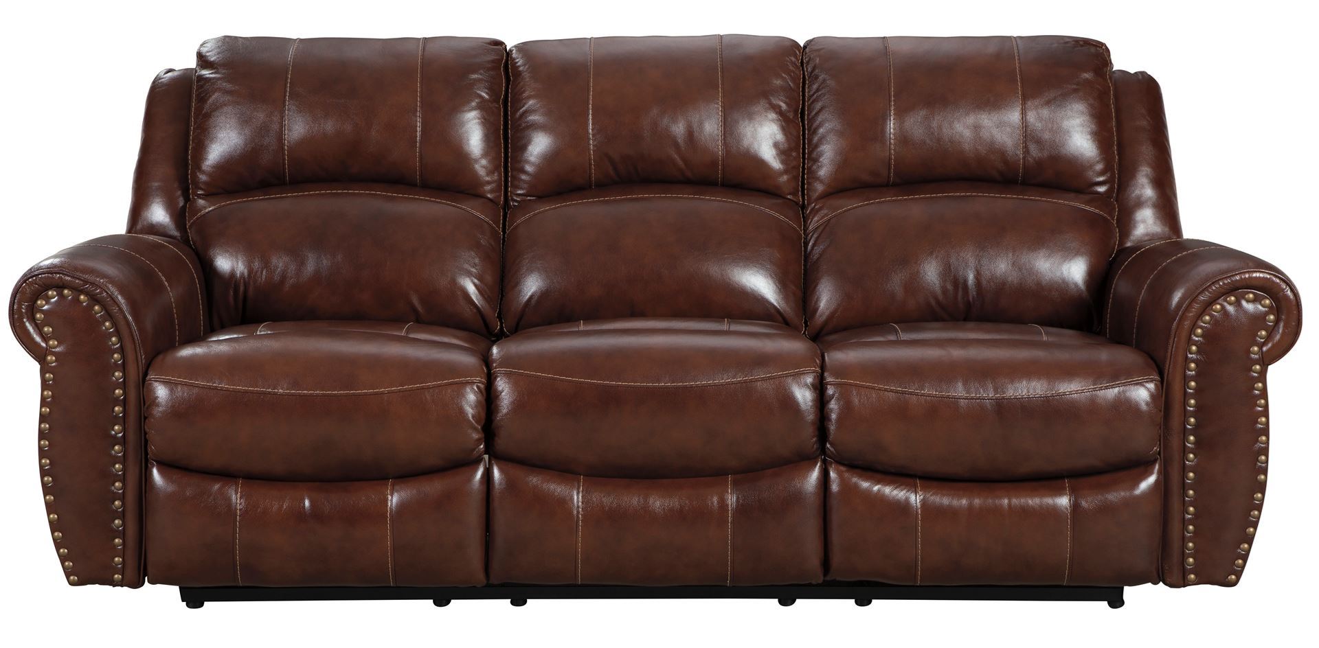 Merging the handsome, stately looks of an armchair with kickback comfort from head to toe, the Bingen reclining sofa rocks on so many levels. Rest assured, this recliner’s seating area is wrapped in top-grain leather for your pleasure. Skillfully matched upholstery everywhere keeps the price well within reason. The recliner’s roll arm profile punctuated with oversized nailhead trim is an easy complement for contemporary and classic decor.