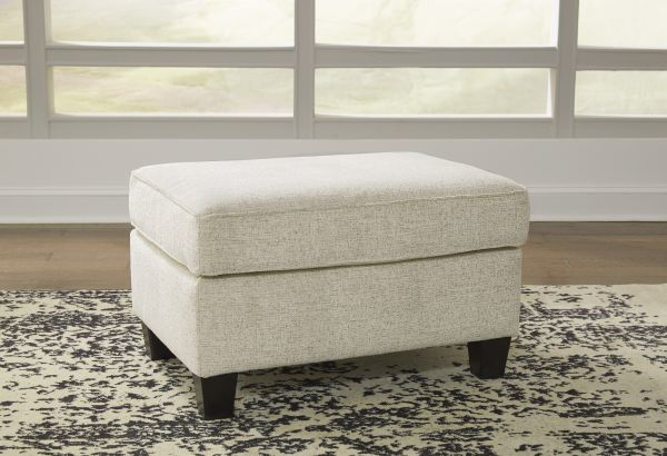 If you’re looking to lighten the mood, you’re sure to find this ottoman a breath of fresh air. Covered in a cream-tone chenille upholstery loaded with plush texture, this less-is-more contemporary ottoman is one sensational sidekick. Corner-blocked frame Firmly cushioned High-resiliency foam cushion wrapped in thick poly fiber Polyester upholstery Exposed feet with faux wood finish