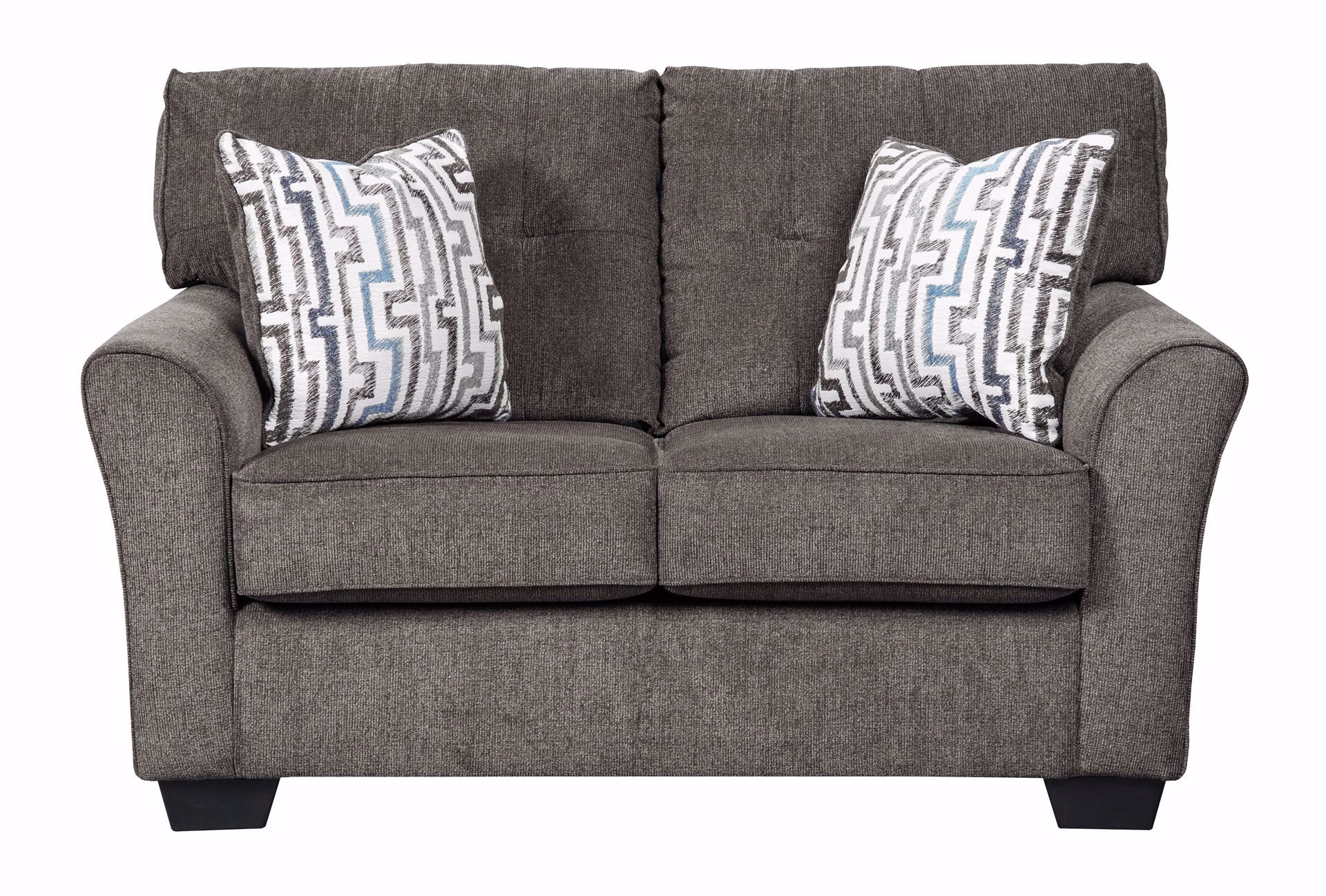 The sumptuous Alsen invites you to kick back in style. Ultra thick cushions are wrapped in a plush earth-tone upholstery sure to blend beautifully with your decor. Chic tufting and wedge armrests bring that touch of flair that sets this group apart.