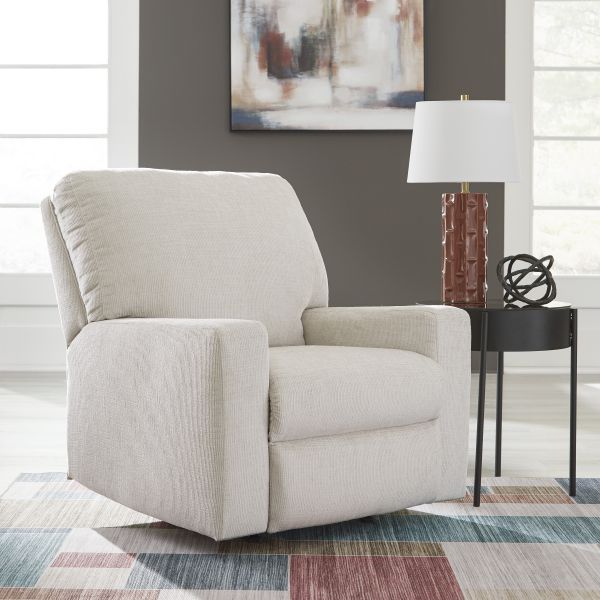 Looking to make a simply chic statement with color? Liven up your living room with this rocker recliner. Its trend-right light neutral upholstery is a perfect blank canvas for adding pops of color. Pairing posh style with everyday comfort, this piece is a welcome addition to contemporary spaces.