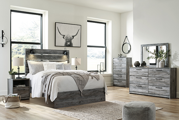 Rest in the casually cool style of this panel bed. Its driftwood and smoky finish and sleek sconce lights give this headboard an easy-going vibe that's perfect for creating a relaxed getaway. Clean lines and modern charm blend for a fuss-free look.