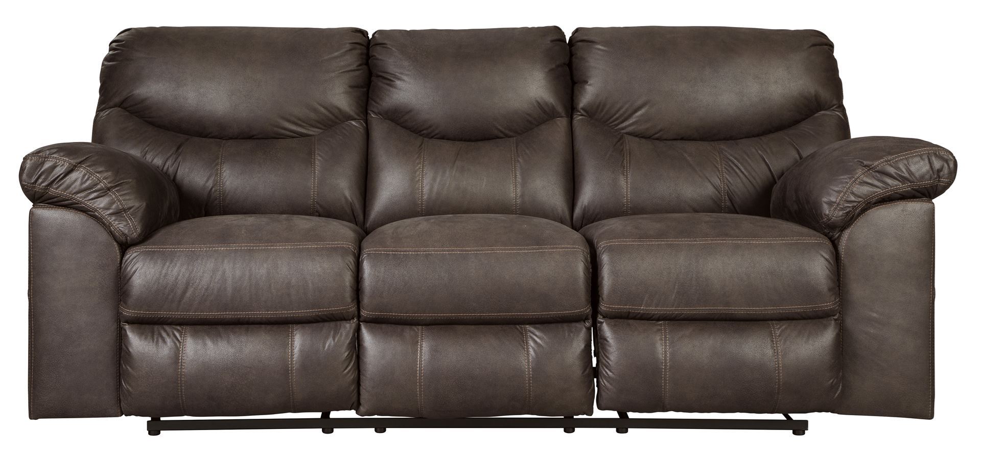 Rock the cool look of leather minus the hefty price tag with the Boxberg reclining sofa. Rich with tonal variation, the indulgently soft upholstery sure looks like the real thing. And talk about indulgent comfort. Double stuffed armrests and sumptuous cushions cradle and support in all the right places. Distinctive scooped stitching enhances this reclining sofa’s contemporary flair.
