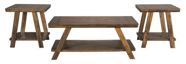 Gently aged finish and replicated plank details offer rustic qualities to a traditional trestle-style design. Bradley coffee table set’s bottom shelves provide display space for magazines, books and accessories galore. Ideally suited for a multitude of aesthetics, from vintage to traditional and even industrial.