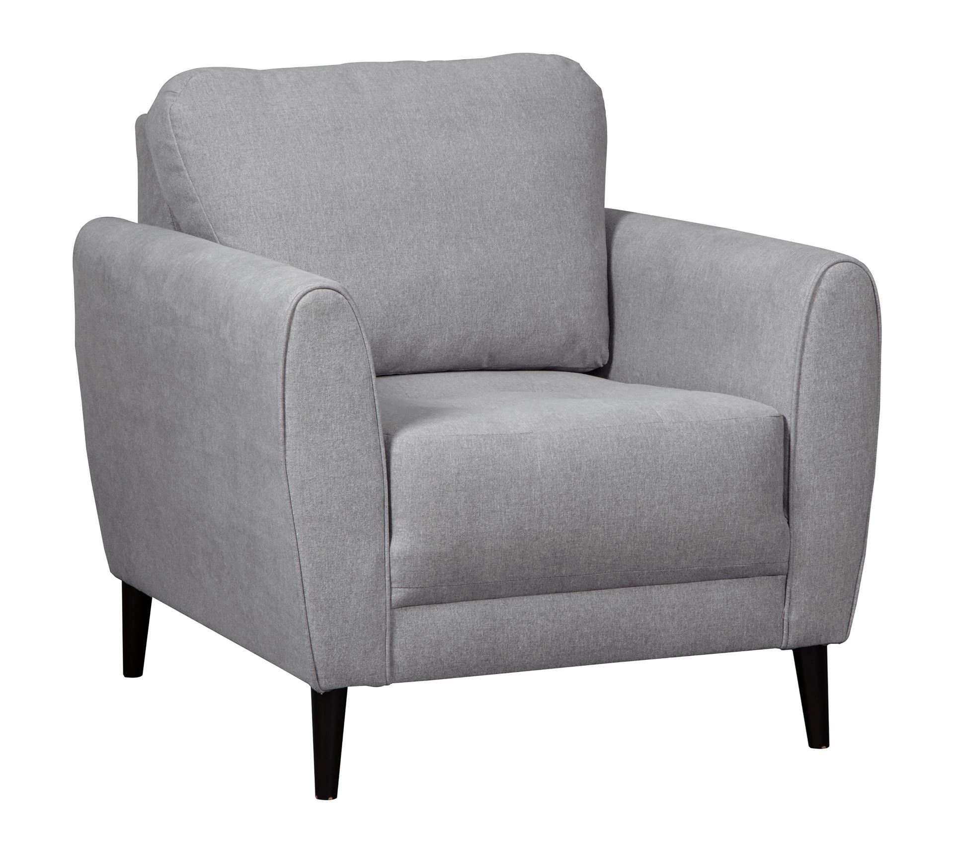 Effortlessly blending mid-century design with today’s fashion, the Cardelllo is a standout piece. Tapered accent legs set a sturdy and confident demeanor. Casual, soft upholstery with in vogue neutral gray tone is easy on the eyes and hands. Mod cushion with bench-like seating is extra thick for extended comfort. And with metallic yarns in contemporary pillows, this group is gleaming with style.