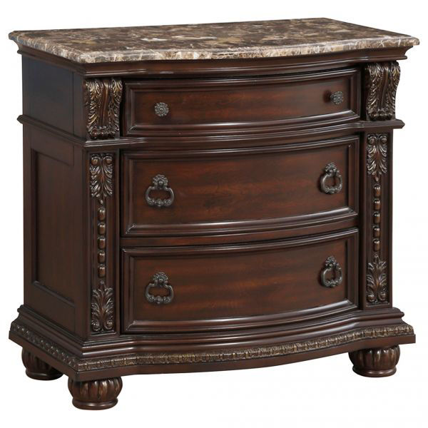 The Cavalier Collection exemplifies the finest in Old World European design inspiration. Egg and dart base moldings, bead molding, and acanthus leaf carvings all blend to achieve an elegant addition for your traditional home. The beautiful detail is accented by the dark cherry finish on birch veneers with gold highlights.