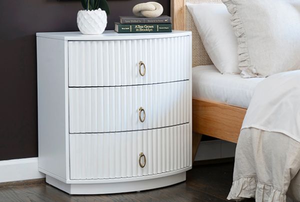 This stylish 3-drawer nightstand in a beautiful white lacquer finish adds a refreshing touch to your bedroom. Crafted from a durable blend of acacia, MDF, and plywood, this nightstand enhances your decor and offers practical storage solutions. With a weight capacity of 50 lbs, it's perfect for holding your bedside essentials. Measuring 24" L x 16" D x 26.38" H, it fits seamlessly into any space. Also available in a sleek black, crisp white, and rich walnut, you can easily find the perfect match for your decor and transform your bedroom!