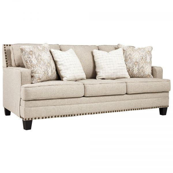 A case of contemporary and classic style influences coming together in a beautiful way, this chair in beige brings a fresh perspective to modern farmhouse living. Distinctive elements include t-cushioning that wraps around setback track arms, nailhead trim and a lovely linen-weave upholstery for an up-to-date feel.