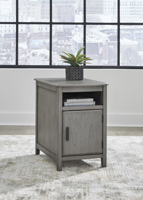 This end table is a simply stunning exhibition of sofa-side function. Your daily routines are upgraded with USB charging and a handy pull-out tray to keep remotes and beverages close at hand. Seeking extra storage? This table is ready to accommodate. Intentionally made for casual lifestyles, it’s an instant everyday essential. Made with hardwood solids, mindi veneer and MDF substrate Gray wood-tone finish Hardware with black finish Pull-out service tray Open shelf Storage cabinet 110V power supply with dual USB charging ports Power cord included; UL Listed Assembly required
