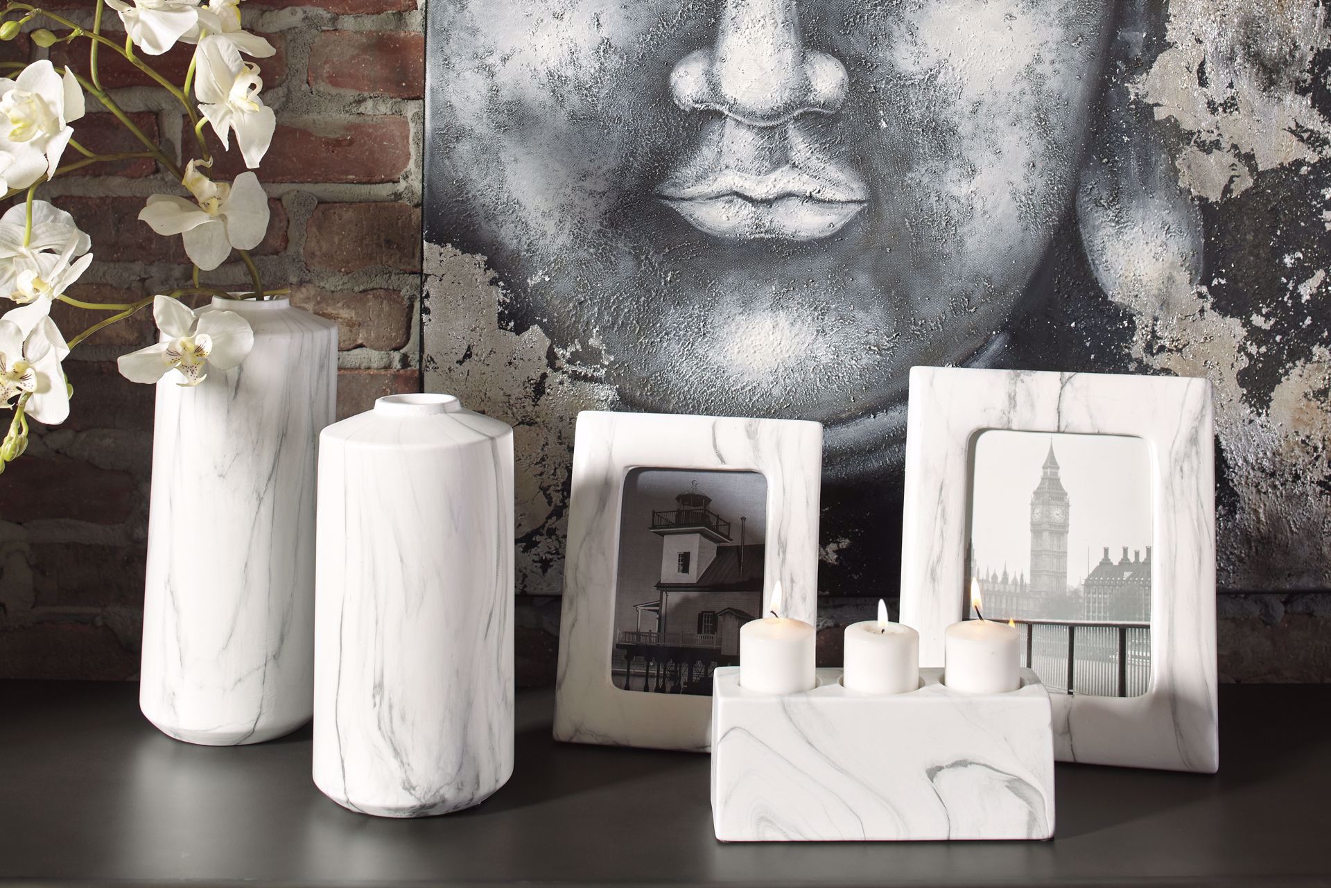 • Includes 2 photo frames (large and small), candle holder (candles not included) and 2 vases (large and small)