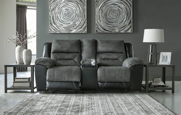 Earhart - Slate Reclining Loveseat with Console