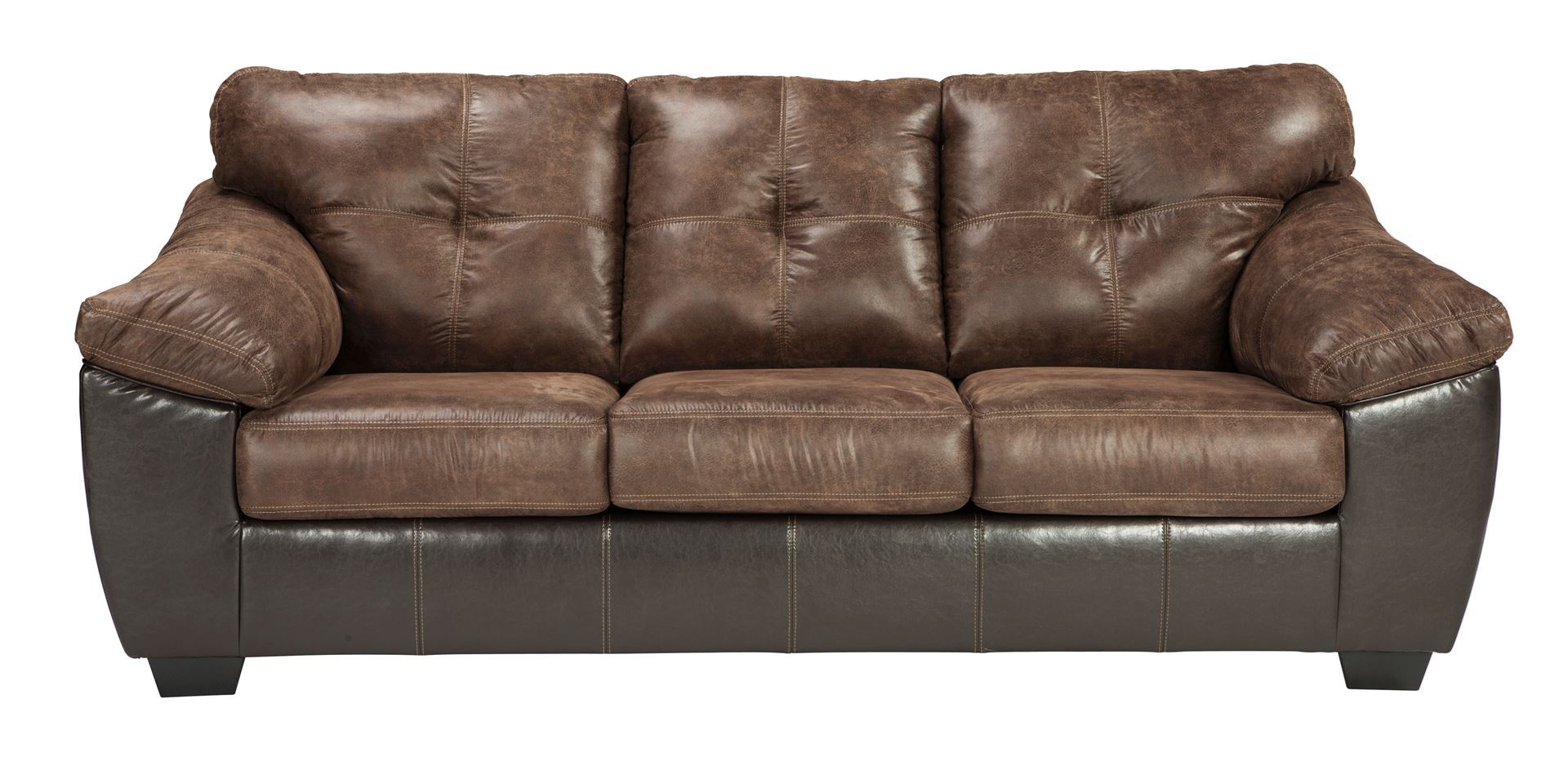 The Gregale flawlessly blends handsome rugged looks with soft, inviting comfort. The result? A sporty design that looks just as good in a polished space as it does a bachelor pad. Classic black has never looked better than with brown subtly aged faux leather. Decorative jumbo stitching brings together the two-tone design with a touch of refinement.