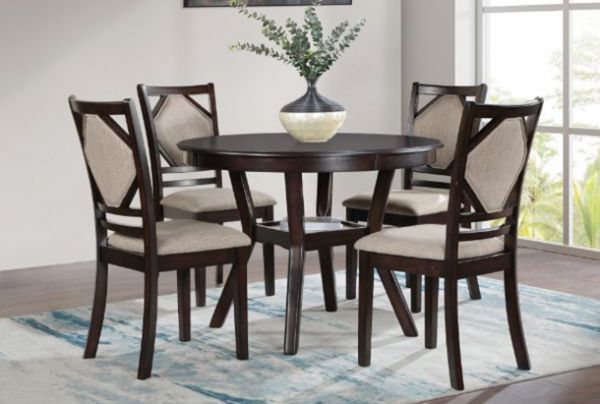 Bring modern elegance and timeless charm into your home with the Kaia Dining Room Collection. Perfect for both casual meals and cozy gatherings, Kaia offers a choice of standard or counter height to fit your dining style. The 42” round table creates an intimate setting, while the open shelf base delivers clever storage and everyday practicality. The mid-light walnut finish on mindy veneer brings a warm, modern feel with a classic undertone, making Kaia a versatile centerpiece for any décor. Designed for comfort and style, the chairs feature a unique rhombus-shaped back with soft round edges paired with brown-beige linen-like cushions for relaxed, stylish seating. With its thoughtful details, compact design, and inviting look, the Kaia Collection transforms small spaces and dinettes into welcoming dining spots where style meets comfort every day.