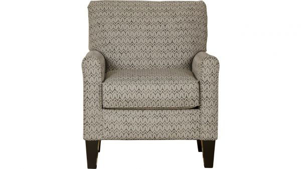 This upholstered accent chair is sure to add a pop of character into your space. The rolled arms, tapered legs, and simple silhouette are completed by the striped geometric fabric, providing an eye-catching accent into your room of choice.