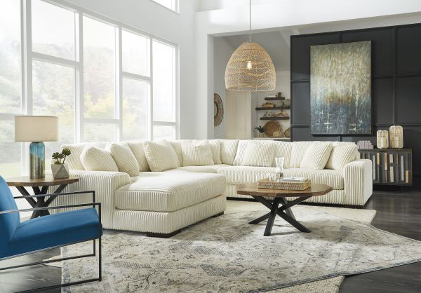 Plush and posh. Showcase your eye for on-trend texture with the statement-making cord upholstery of this sectional. Its stunningly soft fabric entices in an ivory hue, complementing contemporary color palettes. Sink into the cushions and plan to stay a while—this cozy living room centerpiece highlights your high-end approach to comfort and style.