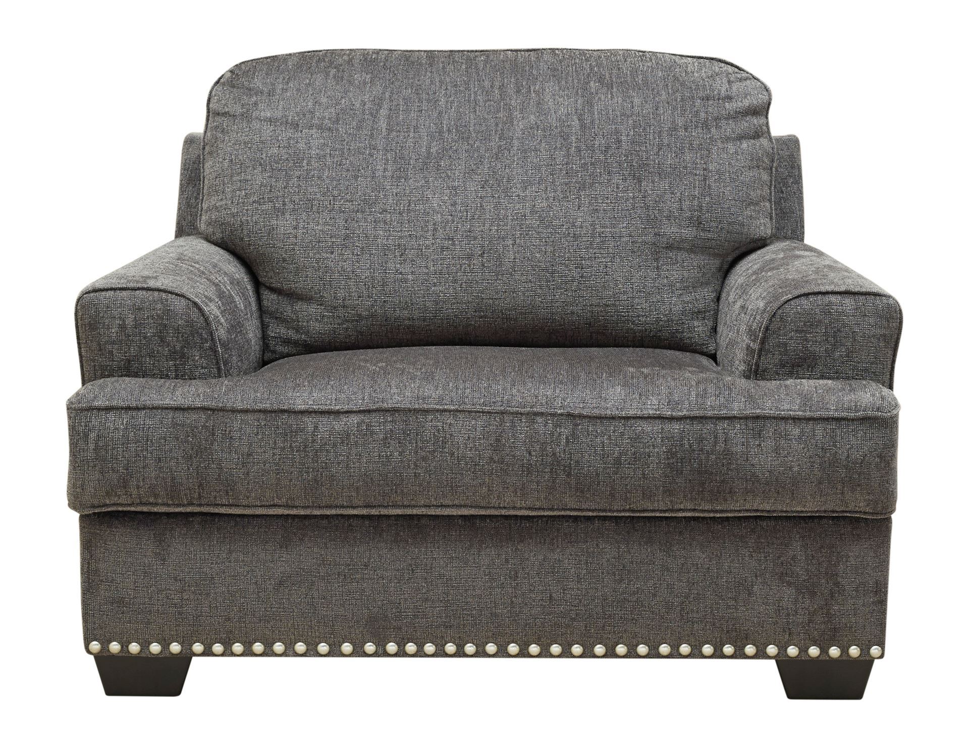 Don’t you love when furniture feels as good as it looks? There’s no doubt this chair & 1/2 makes a trendsetting first impression. Textural chenille fabric elevates the look of your room with its handsome gray hue. Pewter-tone nailhead trim brings an element of shine. Oversized scale with deep seating will give you plenty of those “I fell asleep here” moments.