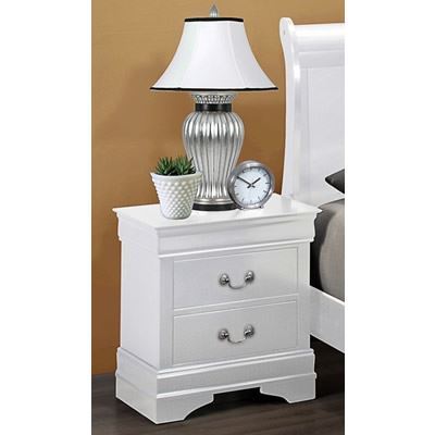 Classic Louis style in a white finish to fit various decors. French dovetail drawer fronts provide strong construction for everyday use. Metal center drawer glides will not buckle with humidity changes. Dustproof bottoms seal your case and give added strength.