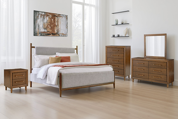 Embrace the allure of contemporary or mid-century interiors with this upholstered panel bed. Its versatile, timeless design, featuring a sling-style cushioned headboard, gently cradles your senses. Ready to refresh and redefine your space, this bed is the ideal choice to elevate your bedroom retreat.