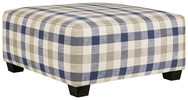 If you yearn for furniture that can transition seamlessly—whether your space is classic, coastal chic or contemporary—rest assured this ottoman is an inspired choice. Sporting a textured weave, the chenille-feel upholstery in a light linen tone is a pleasure for the senses. The eclectic mix of plaid and floral patterned accent pillows is so unexpected—yet such a welcome surprise.