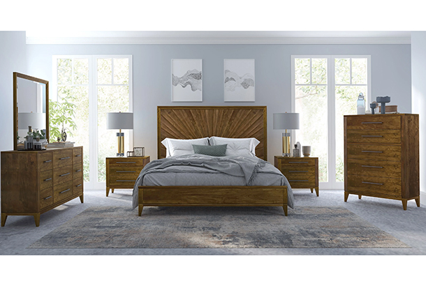 The Moab Bedroom Set brings together timeless design and everyday practicality in a beautifully balanced transitional style. Finished in a rich combination of browns, the lighter tones highlight the tops of the chest, dresser, door chest, and nights, adding depth and contrast to the overall look. Thoughtfully designed chest and dresser drawers offer generous space for organizing bedroom essentials, while the nightstand features two spacious drawers. The door chest also features a concealed cabinet space with adjustable shelving, offering versatile storage for larger items, folded garments, or seasonal essentials while maintaining a clean, streamlined appearance. Whether you’re furnishing a primary suite or upgrading a guest room, the Moab Bedroom Set delivers ample storage, sophisticated style, and practical functionality in one complete collection.