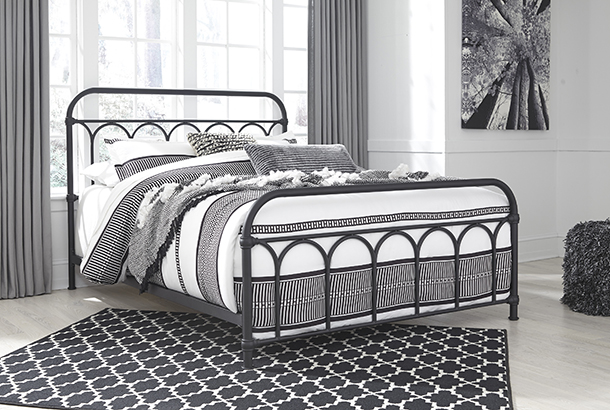 Looking to bring back a sense of bygone charm? Dream it, live it with this metal bed. Matte black frame with moulded "fittings" brilliantly mimics wrought-iron beds from yesteryear for a look that’s perfect for your modern farmhouse or cottage-quaint escape.
