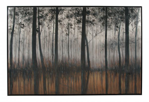 A mystery of trees captures our gaze in this textured wall art. Silver tinted trees reflect beautifully in an orange body of water. Hand-painted nature of the piece makes each one a unique work of art.