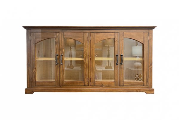 • Subtly angled top corners create a polished look, while the base and arch glass cabinetry bring timeless charm to both traditional and transitional spaces