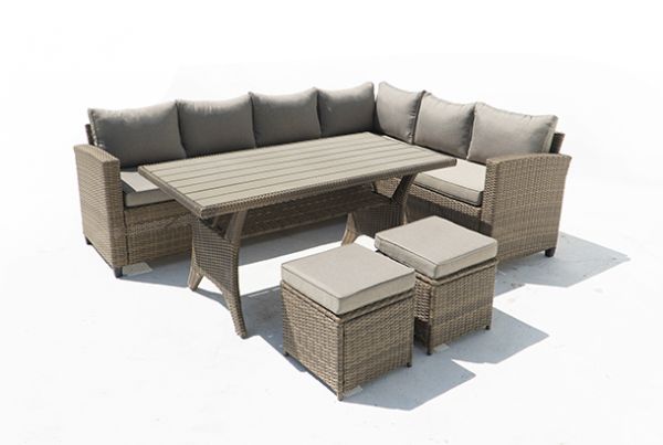 Outdoor - Cream Wicker Sofa & Ottoman Set with Dining Table