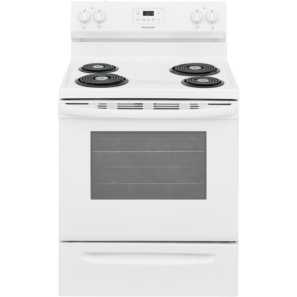 The Frigidaire 30 in. Freestanding Electric Range offers a 5.3 cu. ft. capacity oven and a 4-element electric cooktop featuring two 8 in. and two 6 in. coil elements, so you can cook more at once. Designed for safety, the cooktop includes indicator lights that let you know when it's still hot, while the large oven window allows you to easily monitor food as it bakes.