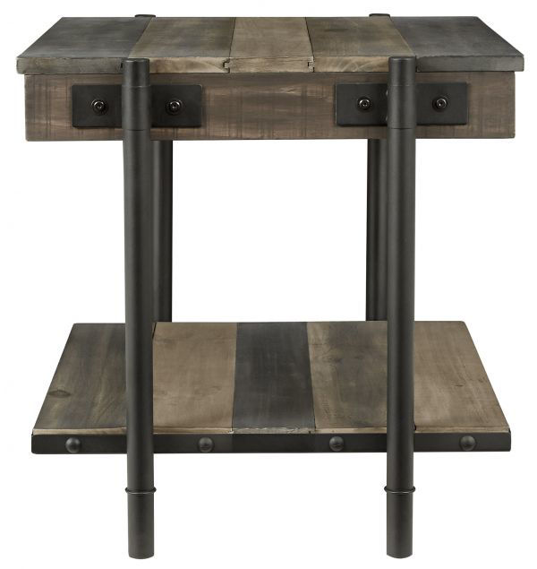 Raise the bar on urban industrial design with the Bostweil solid pine and steel end table. With a blended brown finish and plank effect style, this rustic beauty is sure the steal the show wherever it lands.