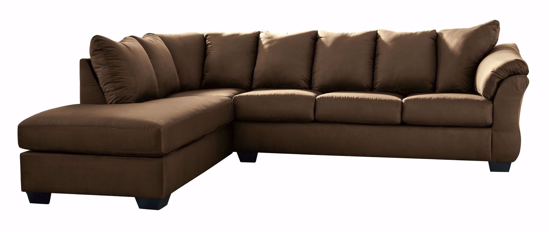 Talk about fine lines and great curves. That's the beauty of the Darcy Sectional and made to suit your appreciation for clean contemporary style. A striking flared frame comfy pillow top armrests and an ultra-soft upholstery that holds up to everyday living complete this fashion statement.