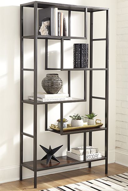 This bookcase is for the geometry lover. Five fixed shelves at various angles create gorgeous negative space in your room. It’s sleek and contemporary with quality construction. You’re going to love propping up your books in style. Made of solid wood and engineered wood Metal frame Frame with black finish 5 fixed shelves