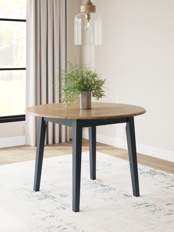 Complement your home’s simply relaxed sensibility with this drop-leaf dining table. A dark blue hue offers a chic contrast to the natural wood tone, for a casual look that vibes with a variety of aesthetics. When guests drop by, convert it from a space-saving two-seater to a larger table with the two drop leaves. Whether you're sipping your morning coffee, settling in for dinner or working from home, this table is smartly designed for everyday comfort and style.