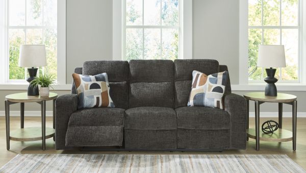 Indulgent comfort meets fashion-forward flair in this reclining sofa. Its luxuriously soft upholstery and captivating color show off your cozy yet smart style. Sleek track arms infuse a modern sensibility, while the striking accent pillows make this piece even more inviting. Simple pull tab reclining puts endless relaxation within easy reach, whether you're lounging solo or with friends.