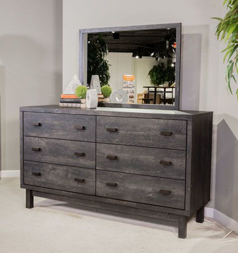 Less. Never more beautiful. Rich in rustic yet contemporary character and decidedly simple on the details, this dresser maximizes the beauty of minimalism. Easy-on-the-eyes elements include a block base and a rustic charcoal finish that gives the wood grain aesthetic a highly modern feel. Easily stow your wardrobe, spare linens and throws in the spacious drawers.